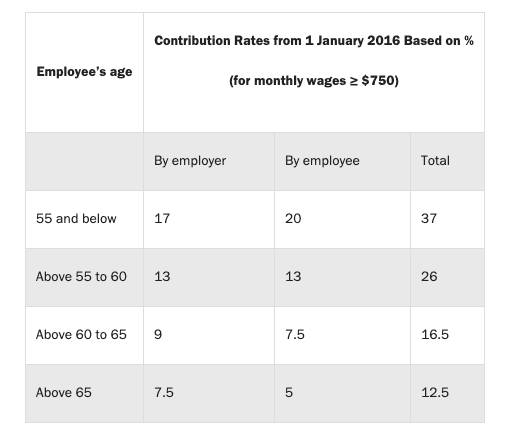 To calculate the amount of CPF contribution, just simply refer to the above table for the contribution rate that you have to pay according to the age group that you fall into, and multiply the percentage with the employees’ wage. The amount of CPF contribution is capped at SGD6,000.